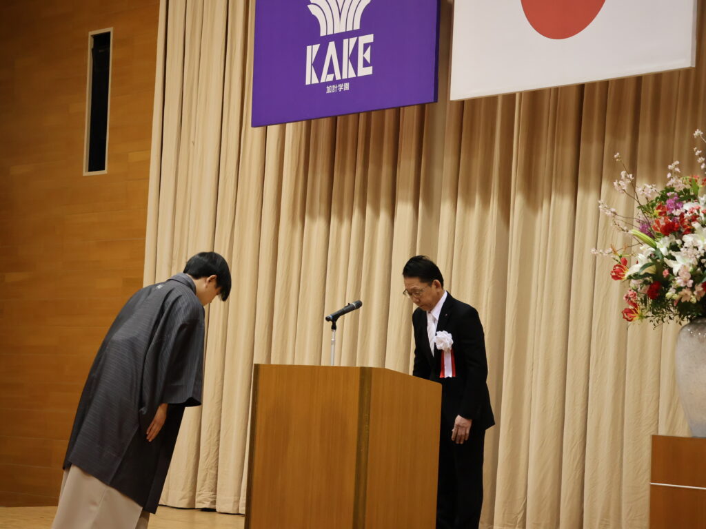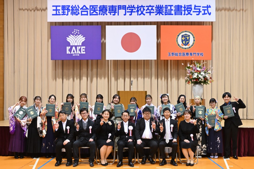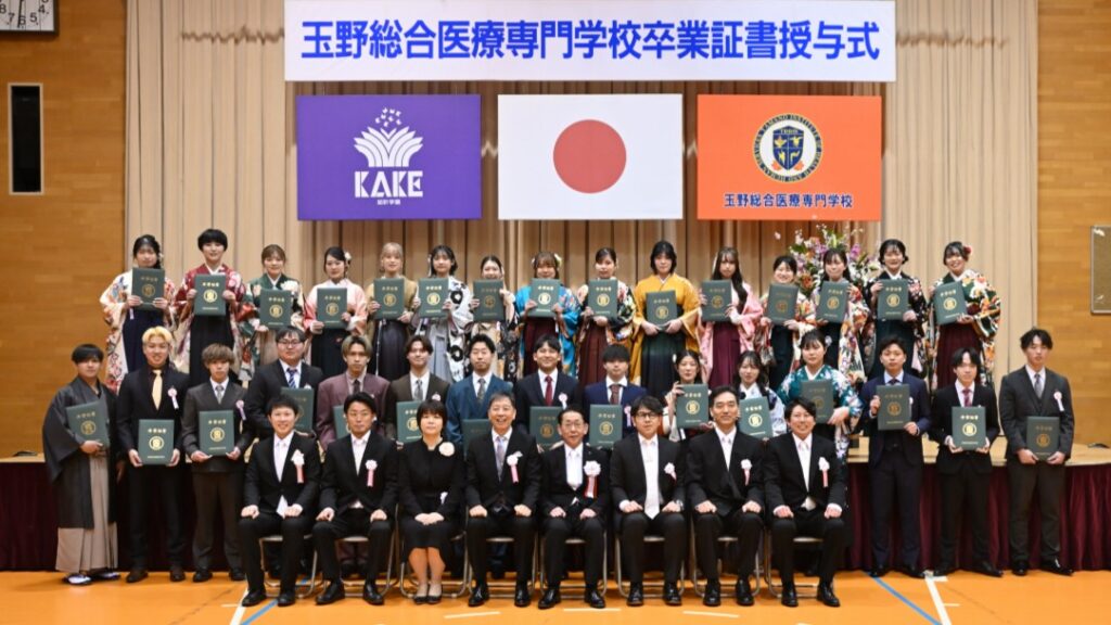 式典には、玉野市長・柴田義朗様をはじめとする多くのご来賓の皆様にご臨席を賜りました。柴田市長からは、「地元玉野市にとりましても、地域医療を担う新たな力が誕生することは大変喜ばしい限りです。本日の卒業は、これまで熱意をもってご指導いただいた先生方のお力添えの賜物であり、心から敬意と感謝を申し上げます」との温かな祝辞をいただきました。また、卒業生へ向けては「どうか初心を忘れず、それぞれが選んだ場所で存分に活躍してほしい」と力強い激励が贈られました。