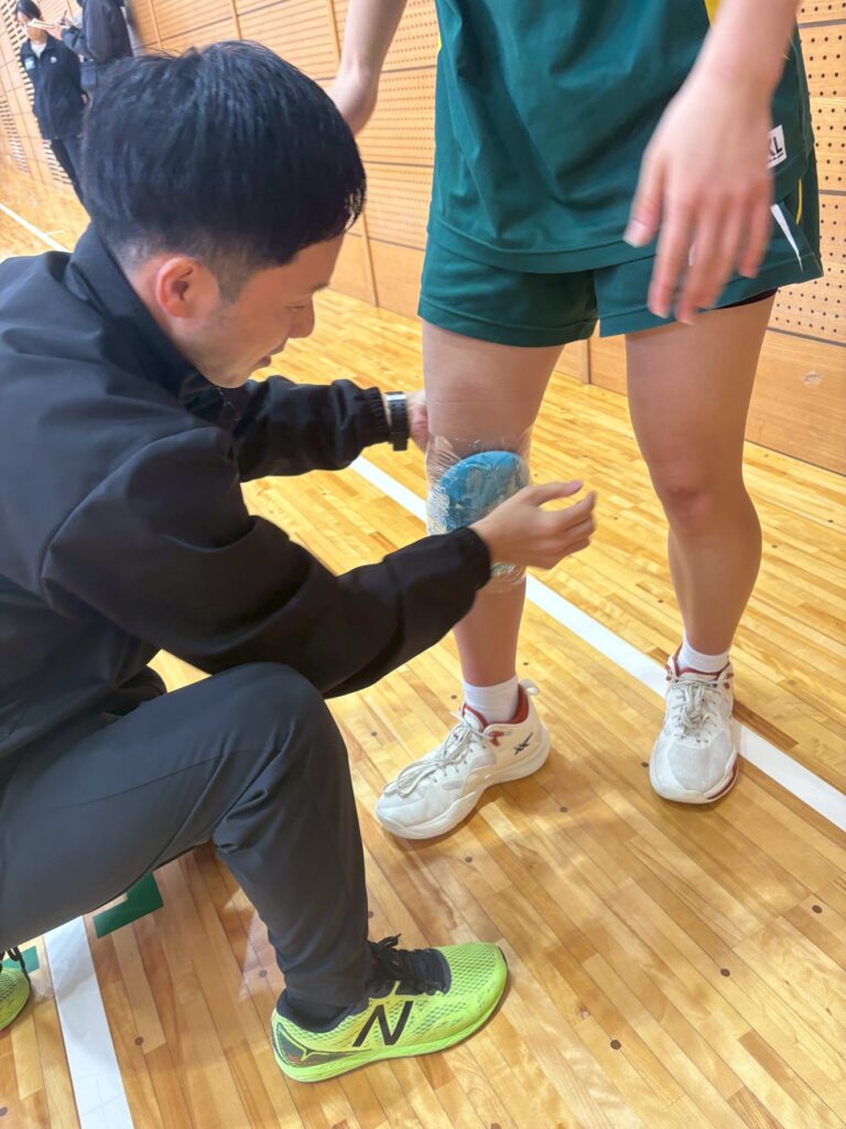 倉敷翠松高等学校女子バスケットボール部との関わりは約2年半になり、スポーツの現場で活動する上で学んだ、応急処置を中心とした救急対応や、コンディショニング・リコンディショニングの知識と技術が役立っていると語ります。