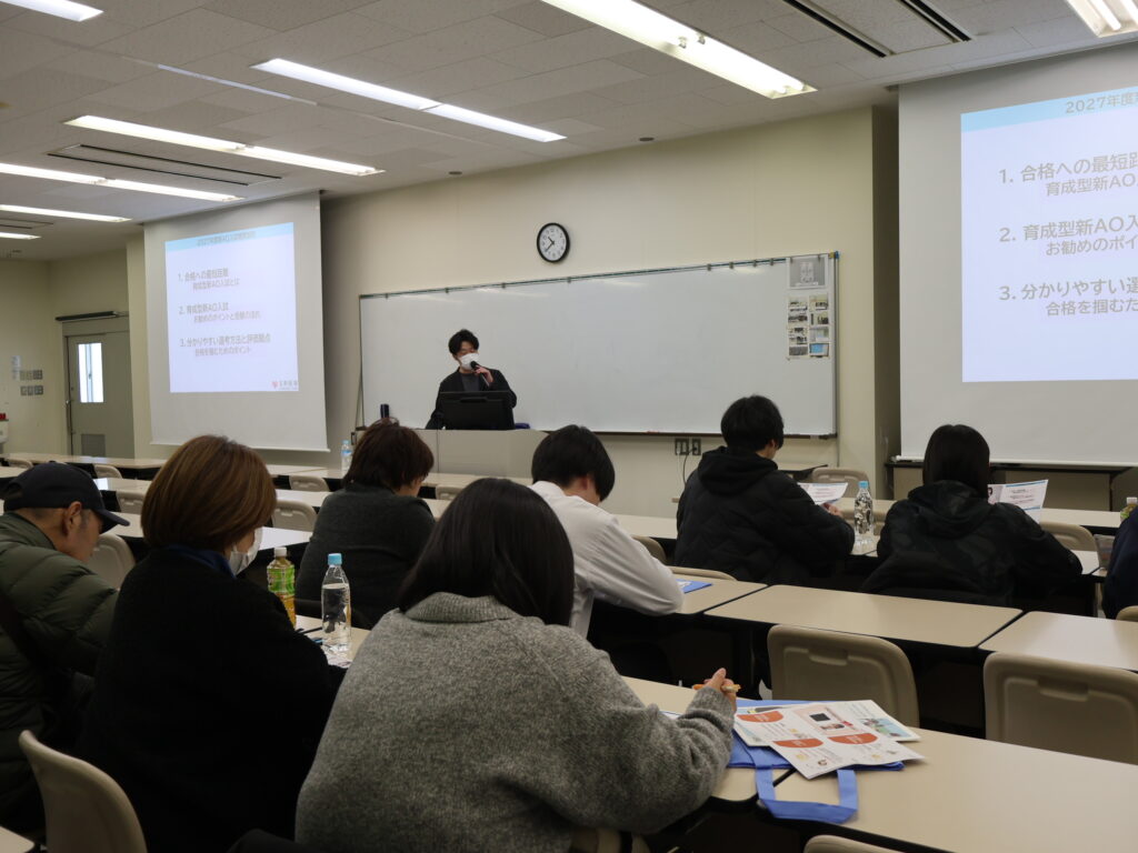 今回の講座では、2027年度入試に向けた最新情報とともに、評価のポイントを具体的に提示。参加者の皆さんがこれから自信を持って準備・対策を進められるよう、分かりやすく解説しました。