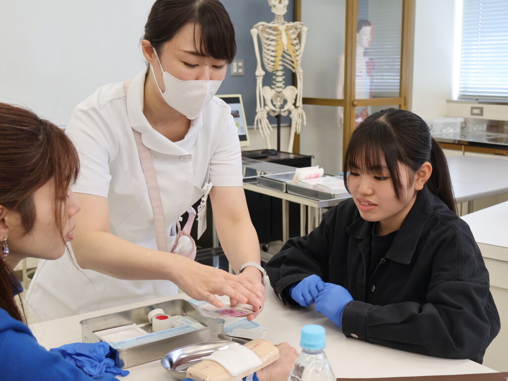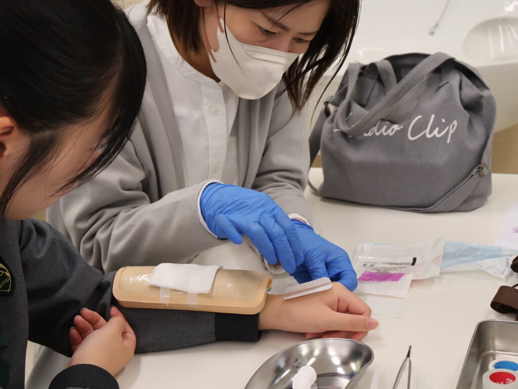 今回のオープンキャンパス特別企画は、親子で学べる特別公開講座として「正しい傷の手当て」をテーマに、日常生活に役立つ実践的な知識と専門的な看護技術を親子で一緒に体験できる構成となっていました。