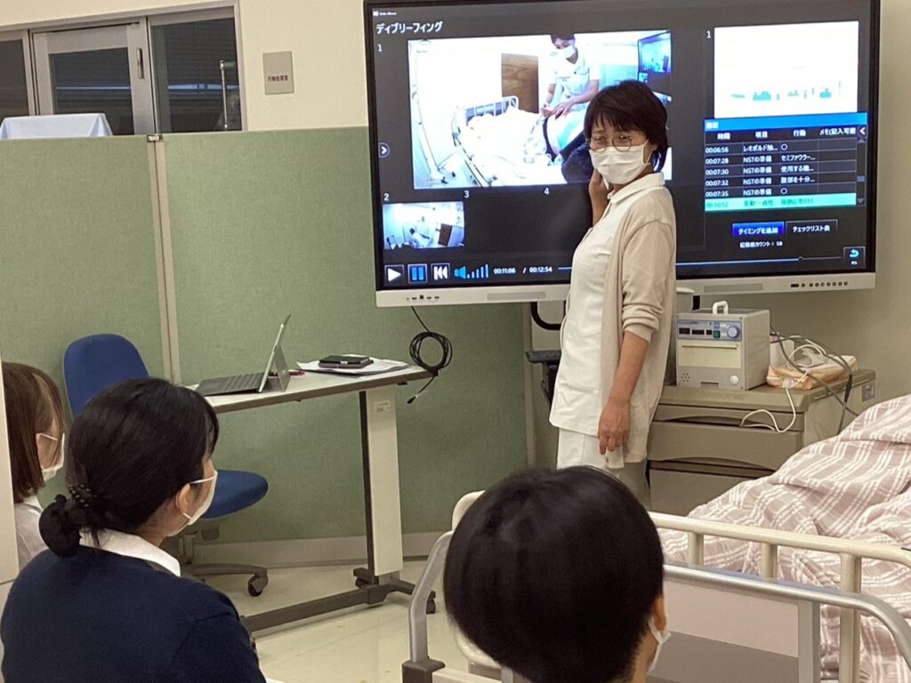 この革新的な実習について、参加した学生からは「自分の行動やチームの動きを客観的に見られるため、次の演習に活かせる」といった声が上がっており、シミュレーション中の自分の看護技術やチーム連携の様子を多角的な視点から分析できることで、具体的な改善点や成功体験が明確になり、最新のDX技術を取り入れた学びの効果を実感している様子が伺えます。